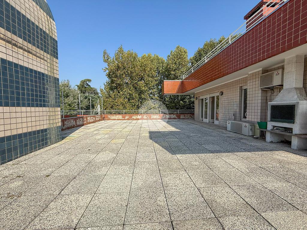 In un contesto signorile situato in una zona strategica con collegamenti diretti a Milano, proponiamo in esclusiva un ampio appartamento di tre locali con terrazzo, di 156 metri quadrati, situato al quarto piano e servito da doppio ascensore. L'unità abitativa è così composta: dall'ingresso si accede a un ampio soggiorno dotato di diversi accessi al terrazzo, una cucina abitabile e un bagno di servizio con zona lavanderia. Proseguendo verso la zona notte, troviamo una camera matrimoniale, una cameretta, uno studio e un bagno finestrato completo di vasca e soluzione offre un'ottima luminosità grazie alla sua tripla esposizione a sud, ovest e nord. Inoltre, è dotata di impianto di aria condizionata, parquet in tutte le stanze, ad eccezione dei bagni e della cucina, una cantina e la possibilità di acquistare due box singoli al prezzo di 20.000 euro ciascuno.